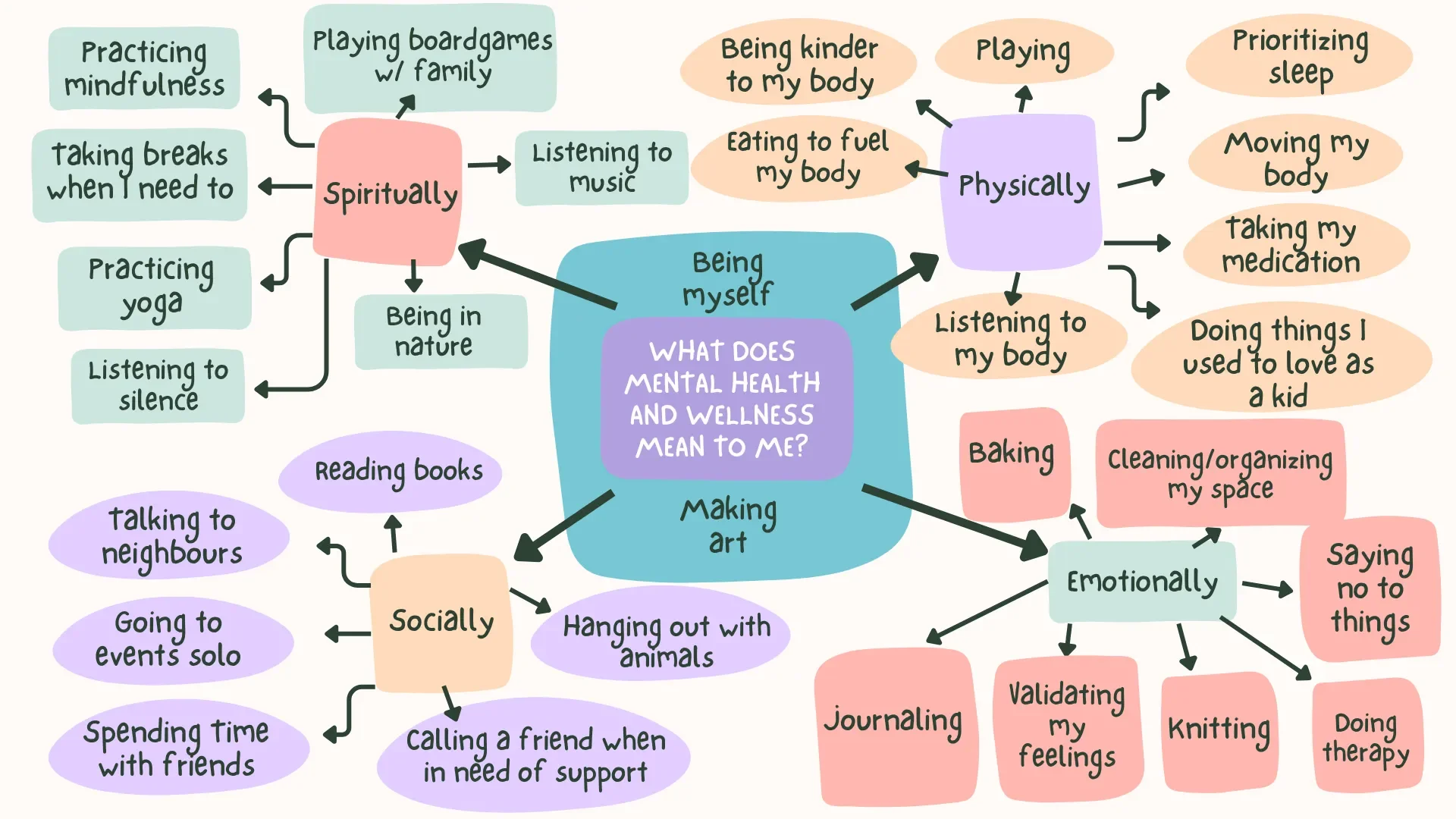 I chose to create a mind map based on the prompt: What does mental health and wellness mean to me?